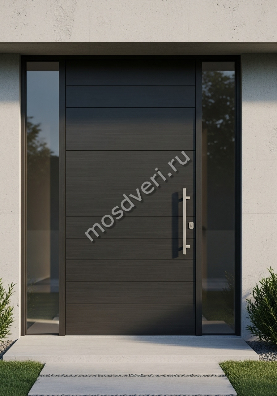 Большая входная дверь темно-серая — совмещает стильный внешний вид и превосходные защитные характеристики.