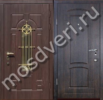 Дверь для квартиры с утеплителем из массива со стеклом и ковкой — совмещает эстетичность и превосходные защитные характеристики.